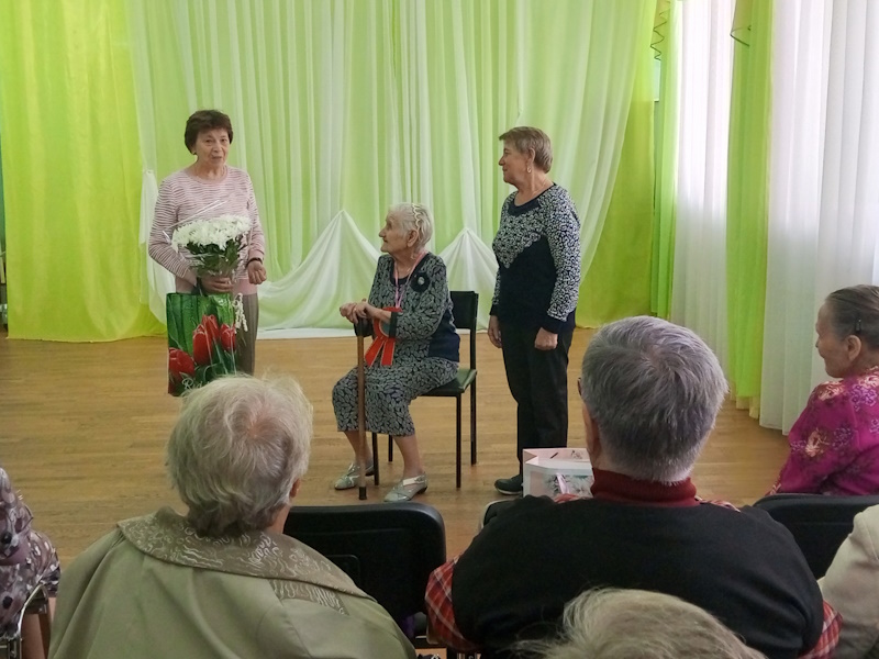 Одним из таких событий стало празднование столетнего юбилея Мустыгиной Зои Ивановны, которую по праву можно назвать старожилом отделения дневного пребывания. В отделении она отдыхает практически с момента его основания, а это более 10 лет, поэтому ее желание отметить свой 100 летний юбилей в «семье» вполне понятно и всем приятно!