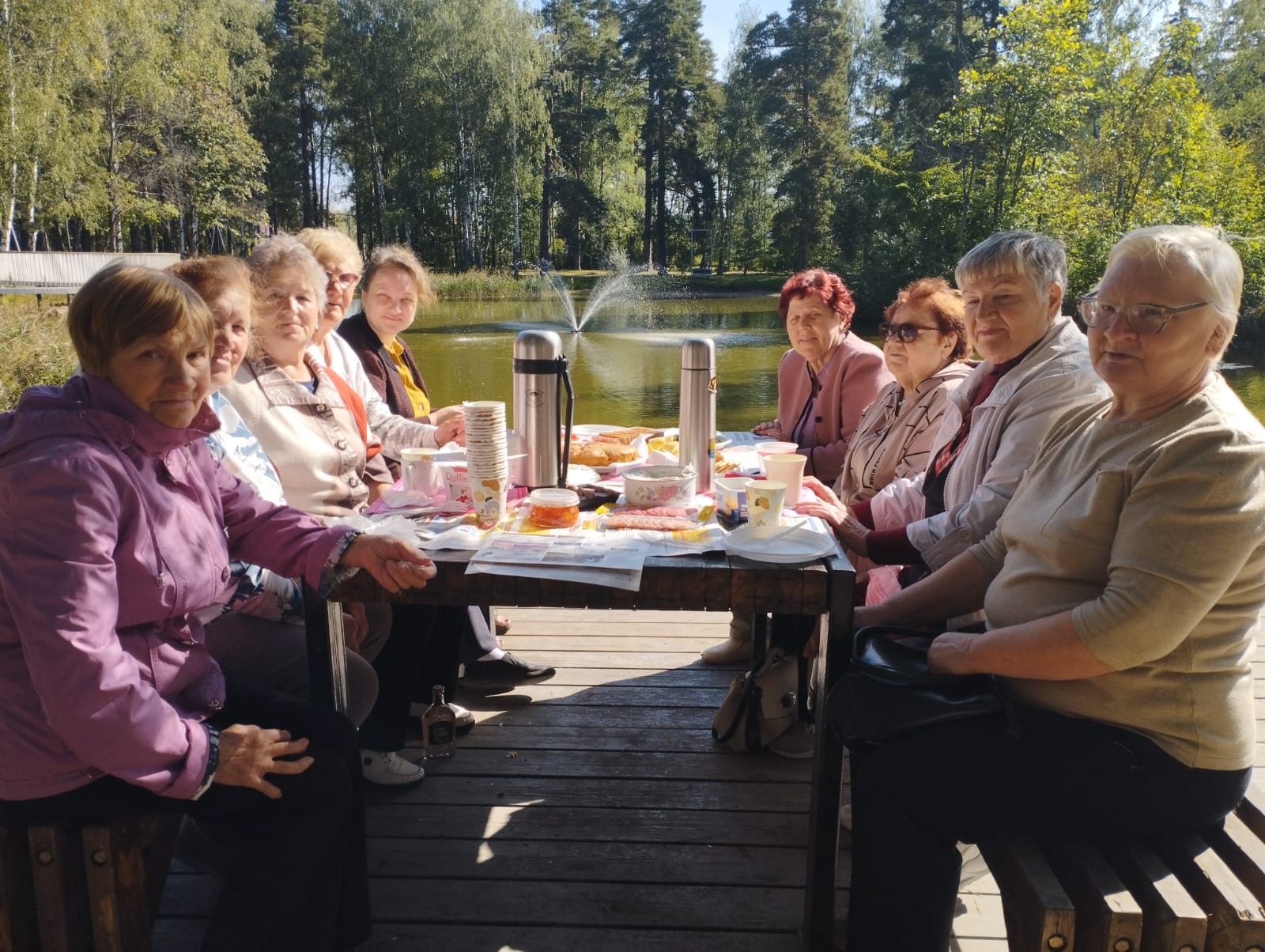 11 сентября осеннее солнце ласково согревало Парк, окрашивая листву в багряные и золотые оттенки. Для отдыхающих отделения дневного пребывания этот день стал настоящим праздником души. В воздухе витали ароматы свежезаваренного чая, яблочных пирогов и свежеприготовленного варенья. Все это создавало особенную атмосферу тепла и уюта для пожилых людей, собравшихся на посиделки под открытым небом.